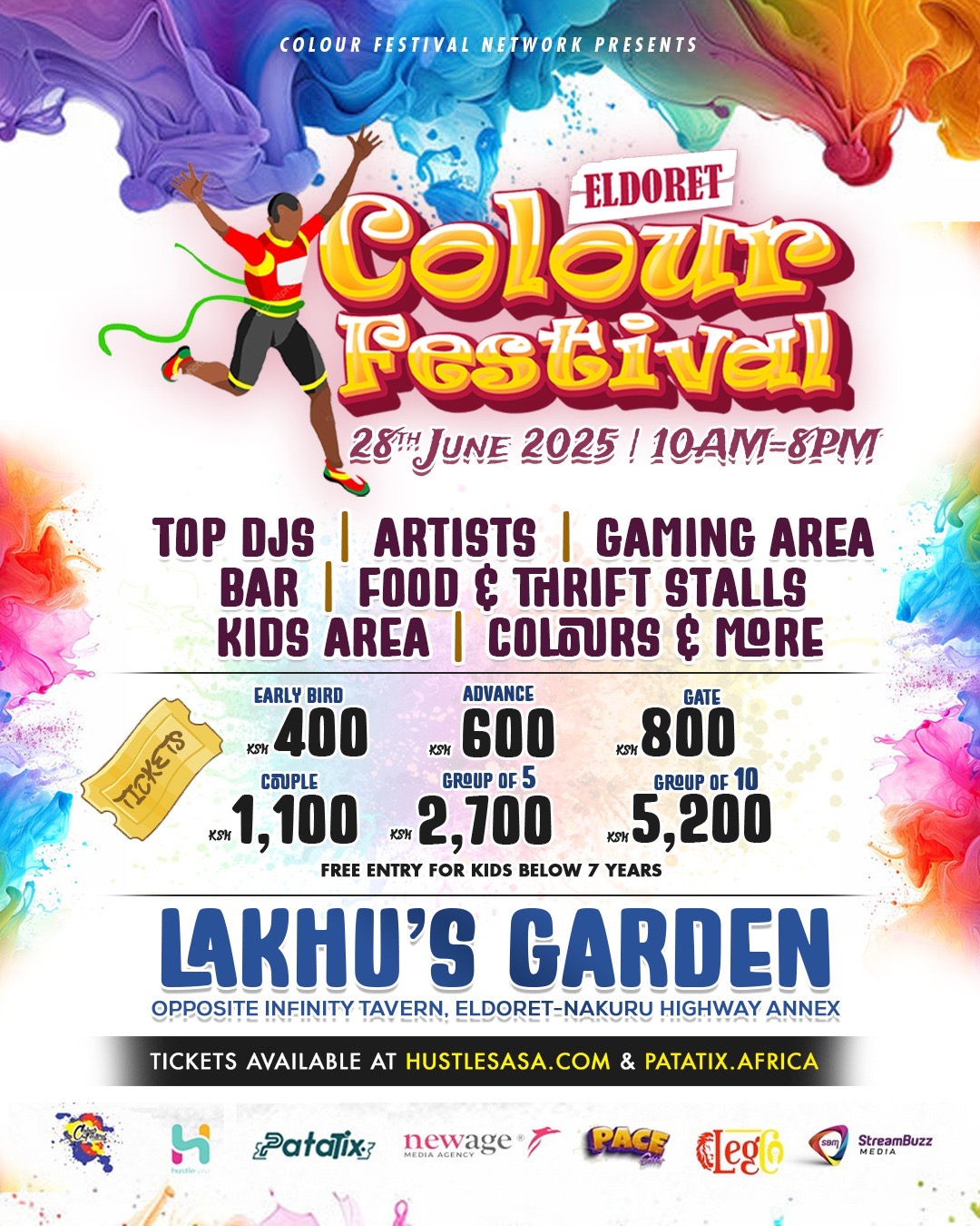 Eldoret Colour Fest, is a vibrant celebration of unity, diversity, and inclusivity. Our goal is to bring people from all walks of life together to enjoy a day of music, art, food, and, of course, the color that brings it all together. Colour Fest is inspired by the traditional Hindu festival (Holi), which marks the coming of spring. On this day, people throw powdered paint, known as gulal (hindi) at each other. For one day the distinctions between castes, religions and gender are set aside and everyone is equal. The festival is primarily observed in India and Nepal, but also in many other countries including Kenya. Activities Top Djs |Artistes | Gaming Area| Bar | Food & Thrift stalls | Kids Area | Colours & so much more.